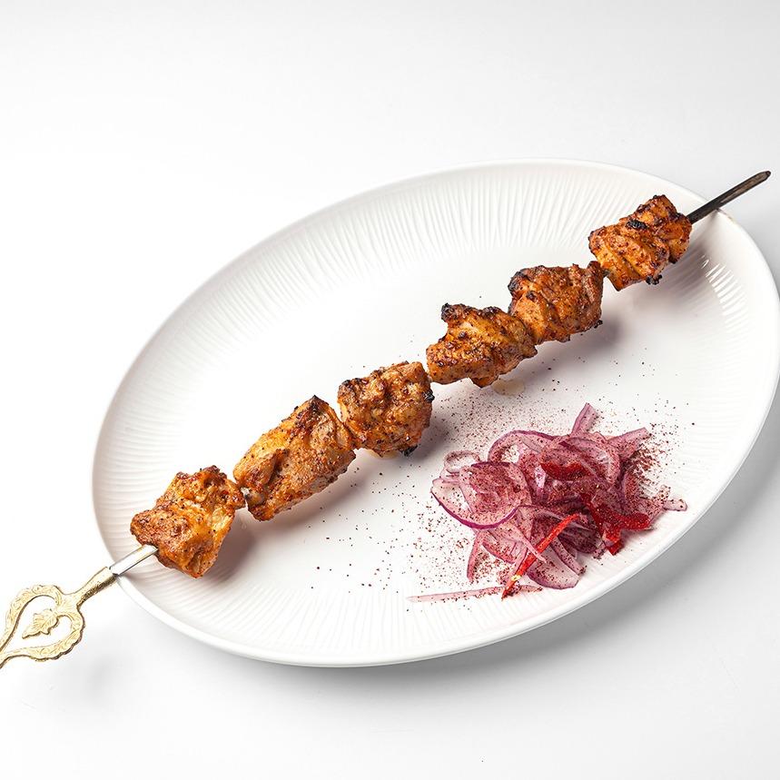 Chunks of lamb marinated in cumin and house spices and served on a skewer.