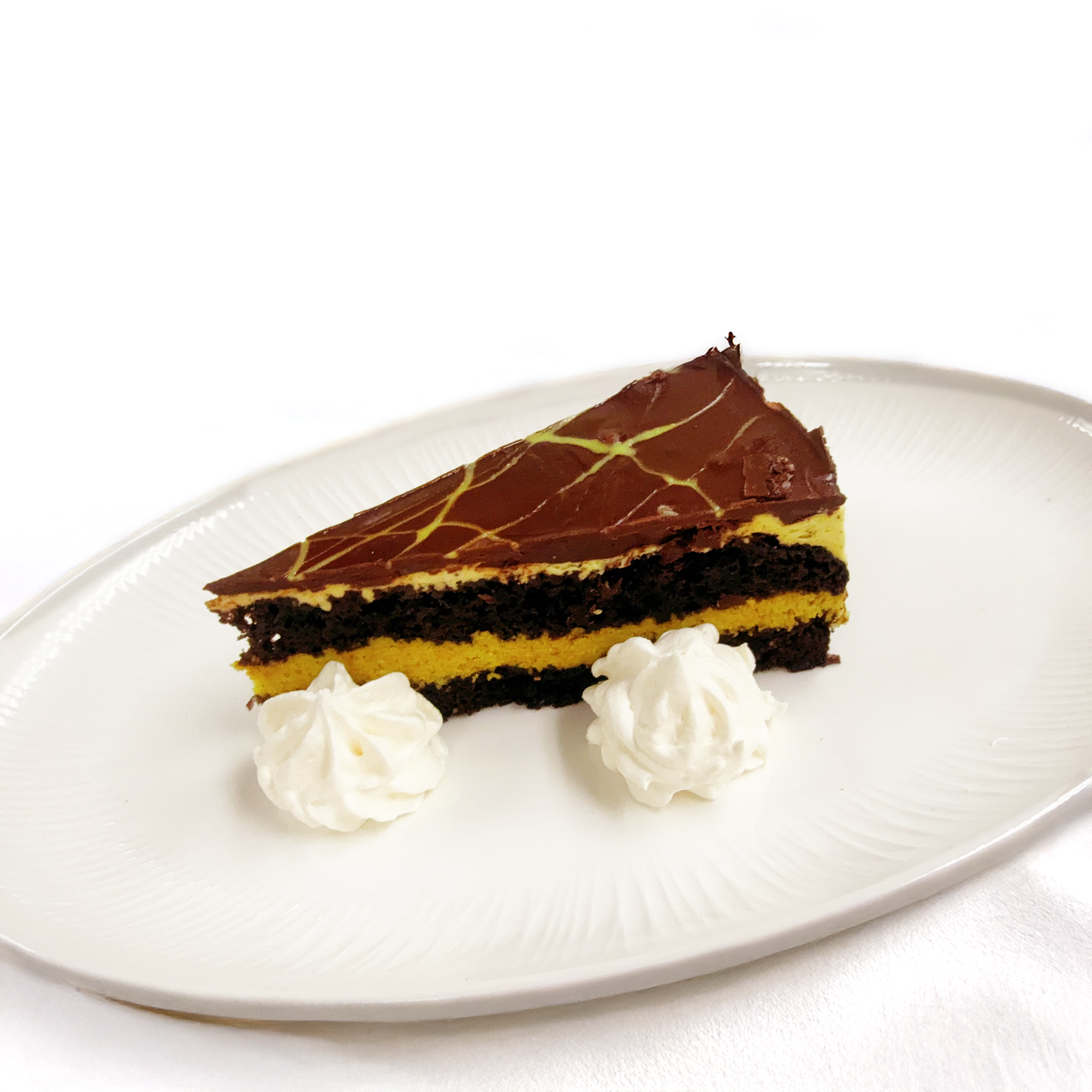 Chocolate cookie crust, pistachio kataifi, creamy pistachio cheesecake, and rich chocolate ganache, finished with crushed pistachios