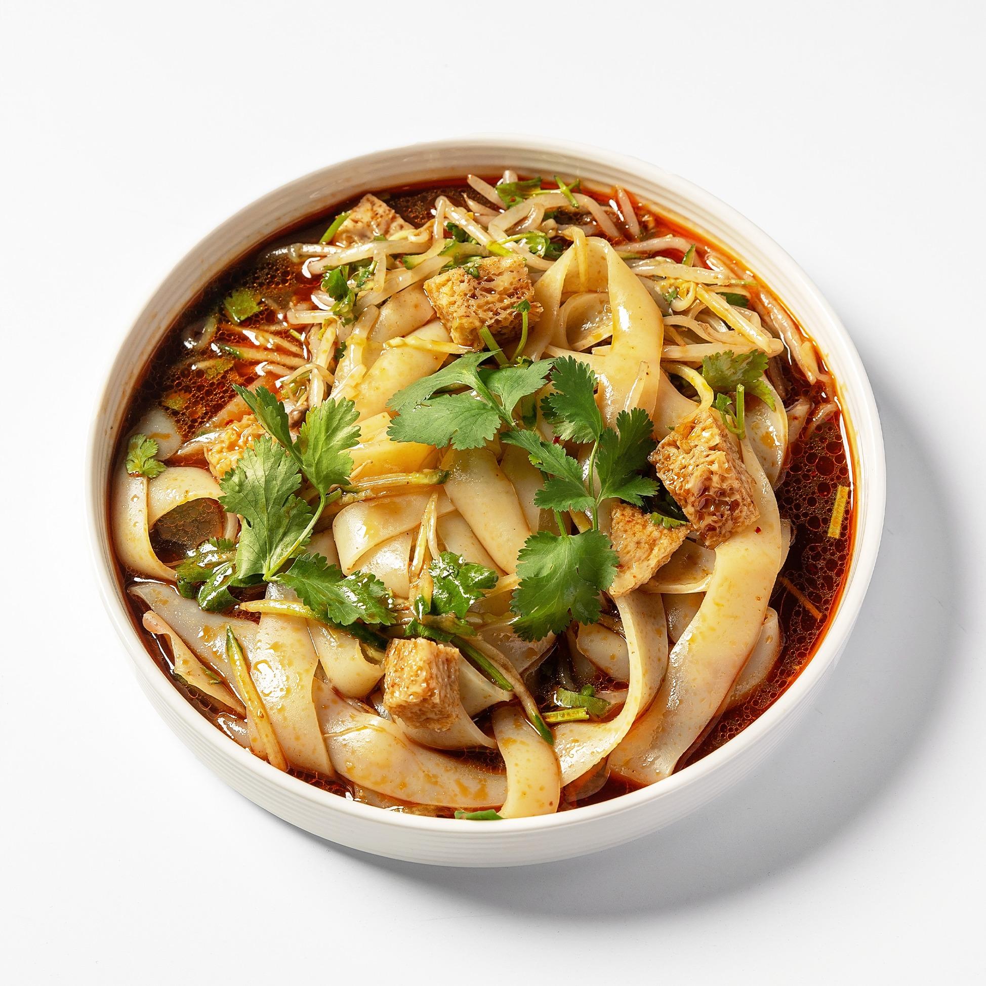 Beef, Onion, Scallion, Cilantro, Green Radish Noodles, and Spicy Chili Oil.