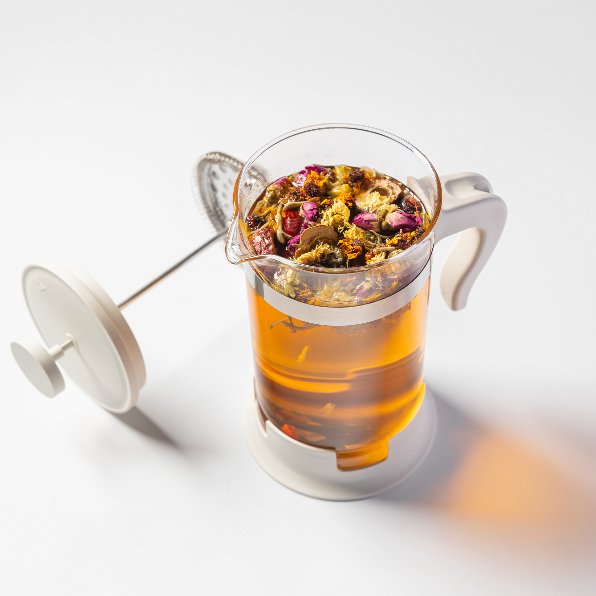 Indulge in a unique blend of flowers with an authentic Uyghur tea recipe that has been perfected over generations. Each ingredient is individually selected, harvested, and dried to bring you the purest flavors and aromas. Ingredients: Dried Goji Berries, Dried Red Dates, Dried Rose Buds, Dried Snow Daisies, Dried Lavender, Dried Chrysanthemum 100% Natural, Caffeine Free, GMO Free.