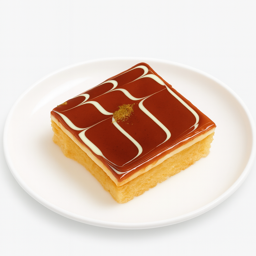 Soft sponge cake soaked in three milks, topped with rich caramel.